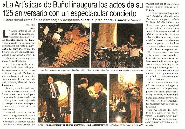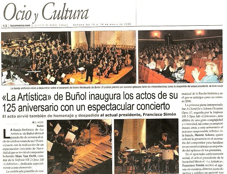 Recensie en link naar fotoverslag van de première van de 2e symfonie (5-1-08) en de concertreis naar Bunol / Spanje