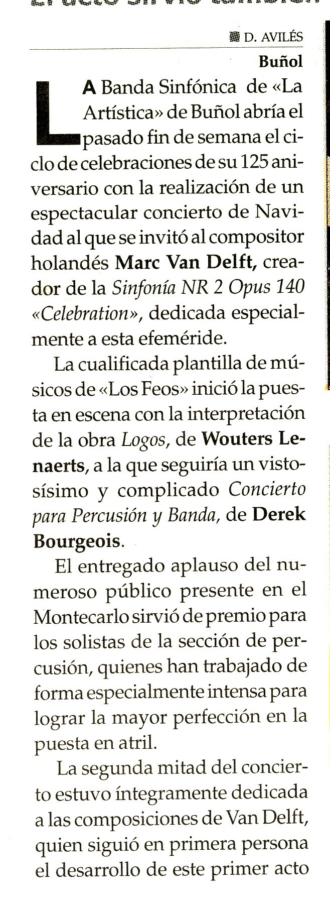 Provisorische vertaling van de recensie van het concert van 5-1-08 in Bunol: