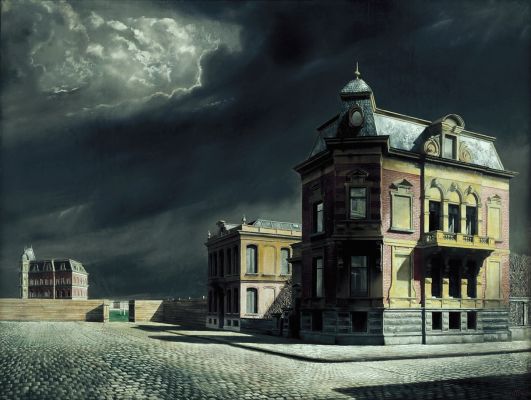 De dreigende stemming van het werk, het gevoel van tussen hoop en