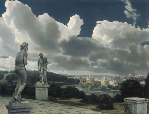 komt, en duistere zware, dreigende bewolking boven de dreven hangt in het