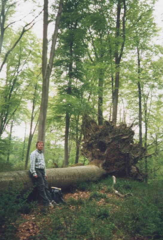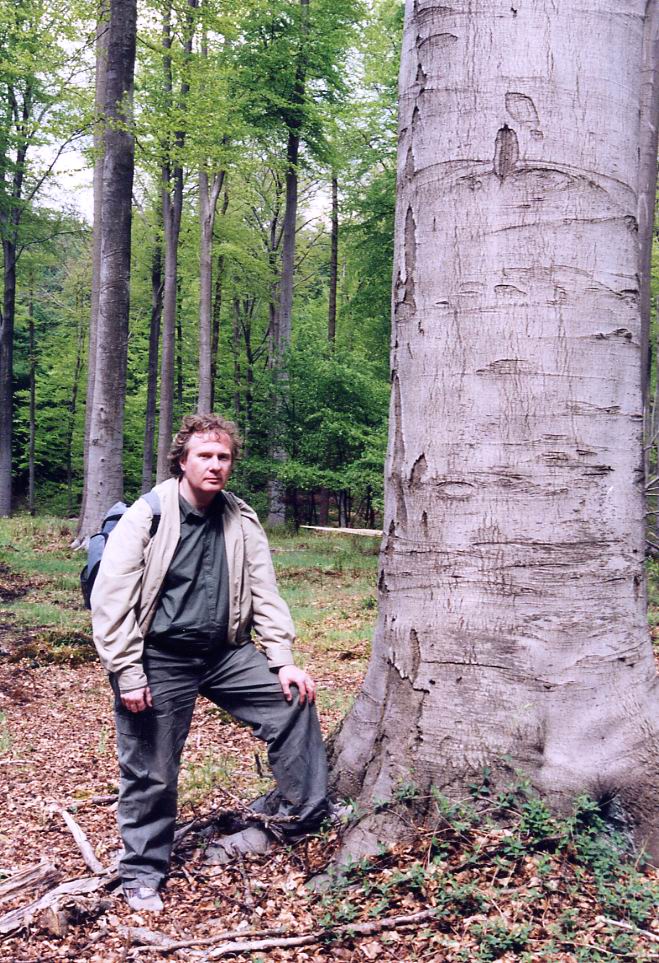 Marc bij een indrukwekkende beuk in het Zoniënwoud...