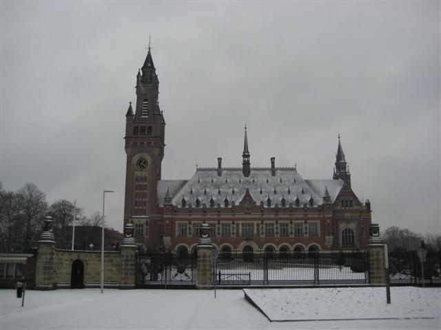 Het Vredespaleis in de sneeuw...